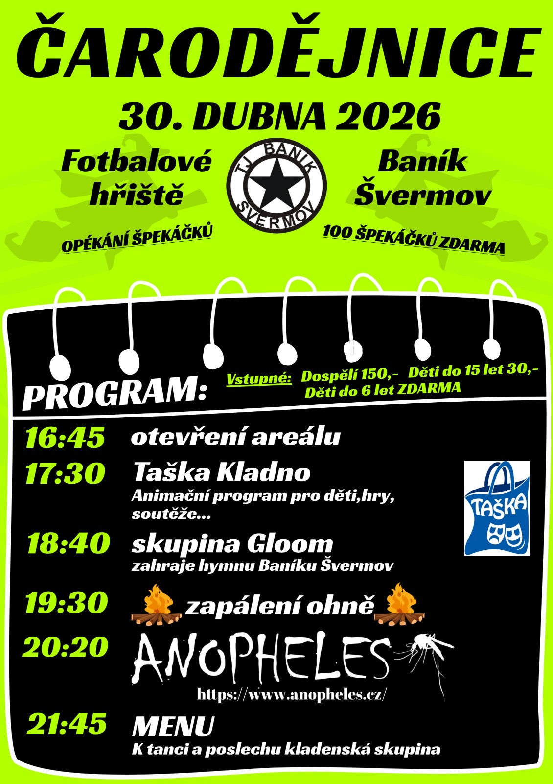 - 30.4. 2026 - Čarodějnice, fotbalové hřiště Baník Švermov